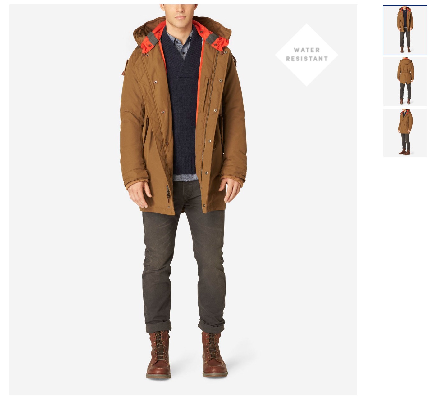 Our 37.5" water-resistant Military Oxford Parka provides protection from various elements and will see you through many chilly seasons to come. It includes a wire rim hood with removable liner, a contrast interior with faux shearling, a concealed front zip closure with snap storm placket, and exterior flap pockets. An adjustable waist draw cord provides a comfortable, personalized fit.